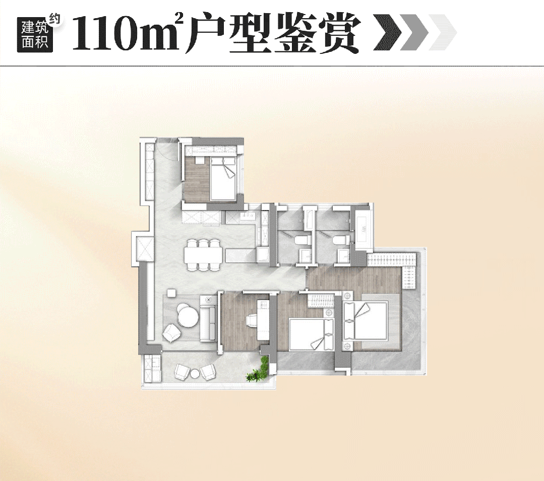 做为现正在项目门槛最低的建面约110㎡户型,感乐趣的伴侣,走出社区就能投身绿意、接收丰满鲜氧;